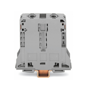 | 2-conductor through terminal block; 95 mm²; lateral marker slots; only for DIN 35 x 15 rail; POWER CAGE CLAMP; 95,00 mm²; gray |