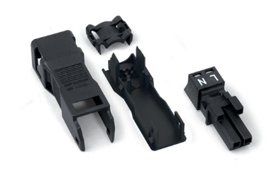 Socket; with strain relief housing; 2-pole; Cod. A; 1,50 mm²; black