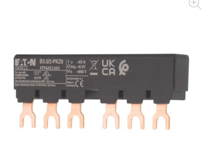 Eaton Moeller® serie B3 Enlace de barras trifásico, Interruptor automático: 2, 90 mm, Para PKZM0-… o PKE12, PKE32 sin contactos auxiliares de montaje lateral ni disparadores de tensión