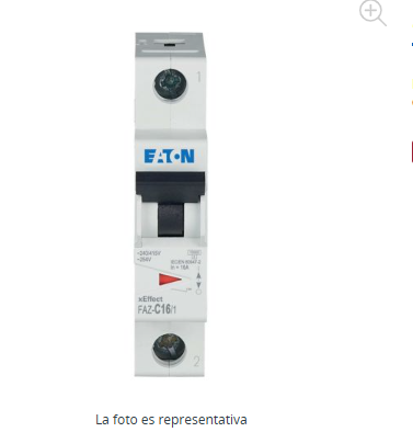Interruptor magnetotérmico Eaton Moeller serie xEffect – FAZ. FAZ, unipolar, característica de disparo: C, corriente nominal In: 16 A