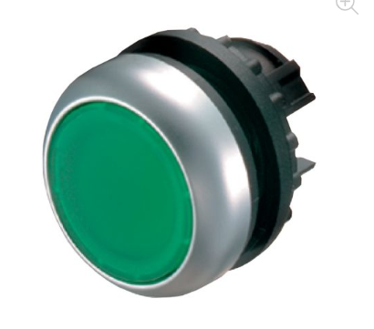 Actuador pulsador iluminado Eaton Moeller® serie M22, RMQ-Titan, enrasado, mantenido, verde, en blanco, bisel: titanio