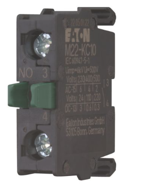Elemento de contacto Eaton Moeller® serie M22, contacto de cierre, inferior, terminales de tornillo, fijación en la base, 1 N/A, 24 V 3 A, 220 V 230 V 240 V 6 A